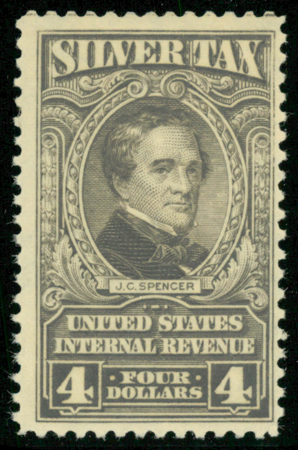 7269 og RG123 imageSilver Tax, 1944, $4 gray (Scott RG123), o.g., very lightly hinged, Fine.