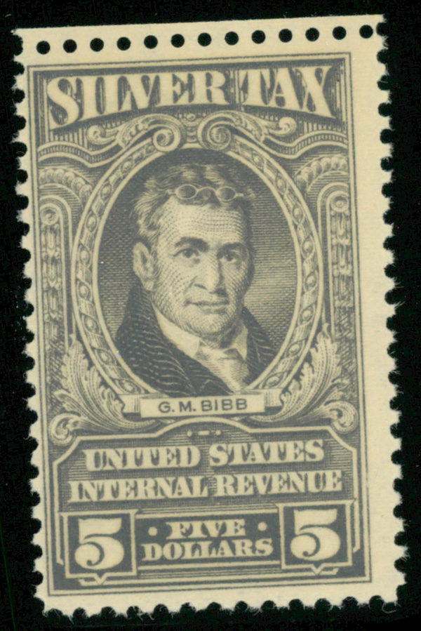 7271 nh RG124 imageSilver Tax, 1944, $5 gray (Scott RG124), o.g., never hinged, Fine.