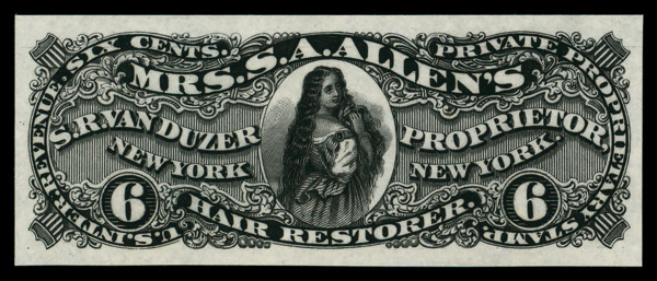 7275 P RS250P3 imageVan Duzer, S.R., 6¢ black, plate proof on India (Scott RS250P3), without gum as issued, Extremely Fine.