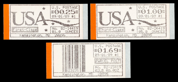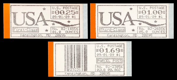 7250 nh CVP16a-CVP20a image1989, 25¢-$8.75 Computer Vended Postage, Kensington MD, machine #83, 1st Day Dated, complete (Scott CVP16a-CVP20a), set of 5, o.g., never hinged, Very Fine.