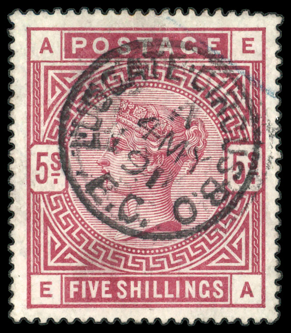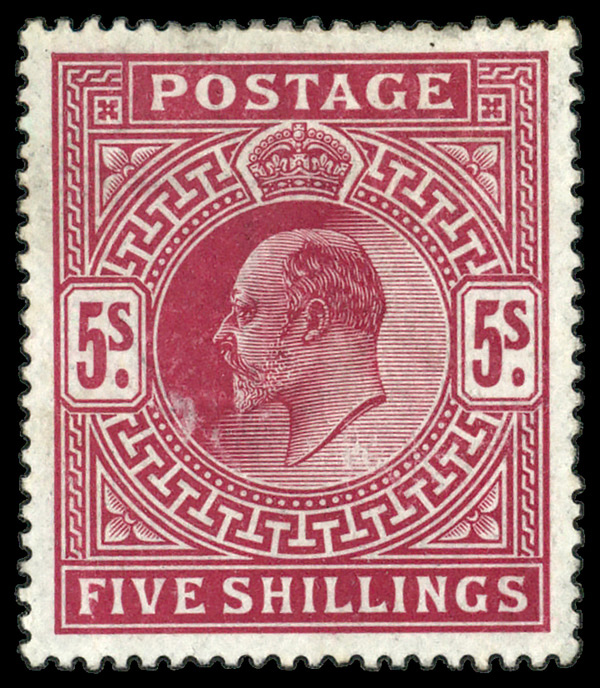 7354 og 140 image1902, King Edward VII, De La Rue printing, 5s bright carmine (Scott 140), single, o.g., lightly hinged, Fine to Very Fine.