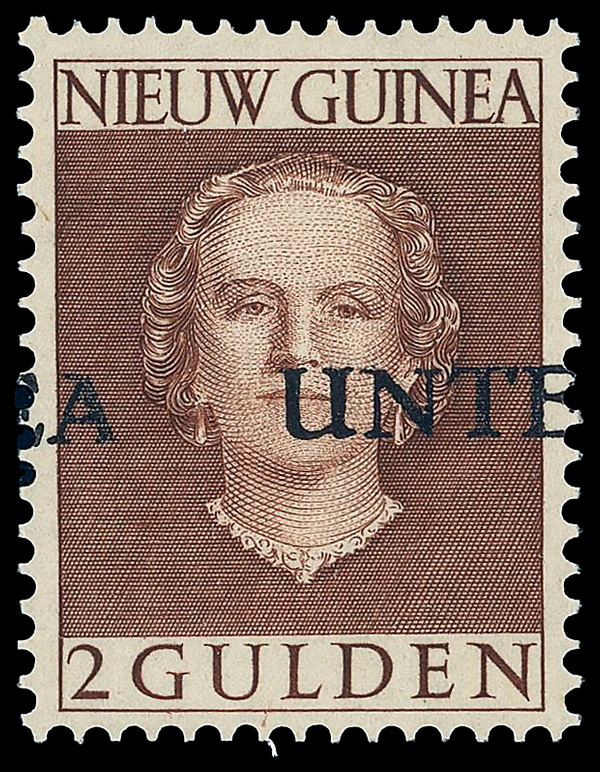 7330 nh 18 image1962-63, 2g Netherlands New Guinea, type 1 'UNTEA' overprint, shifted overprint (Scott 18), o.g., never hinged, Very Fine to Extremely Fine.