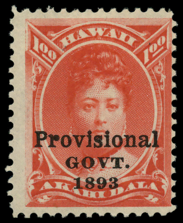 7321 og 73 image1893, Provisional Govt., $1 rose red, black overprint (Scott 73), o.g., hinged, Fine.