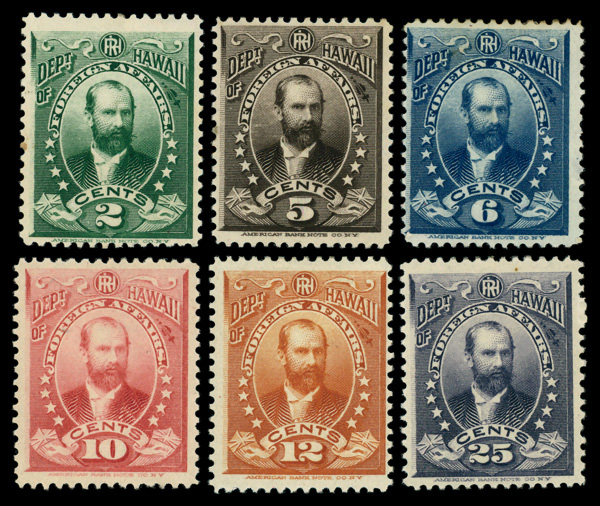 7322 og O1-O6 imageOfficials, 1896, 2¢ to 25¢ complete (Scott O1-O6), o.g., hinged, Fine to Very Fine.