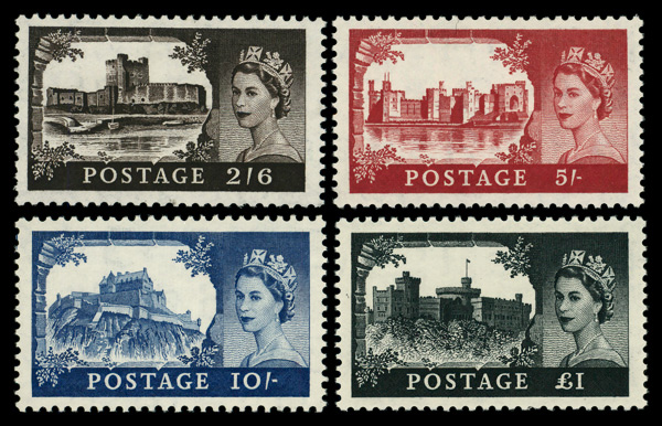 7344 og 309-312 image1955, Queen Elizabeth II "Castle" high values, Waterlow printing, 2s6d to £1 complete (Scott 309-312), o.g., lightly hinged, Very Fine to Extremely Fine.
