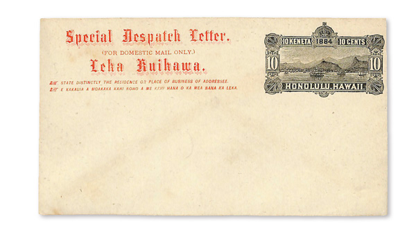 5474 og UE1 imageSpecial Delivery Envelope, 1885, 10¢ black (Scott UE1), entire; gum on flap discolored as often, Very Fine.