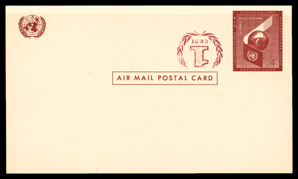 5480 og UXC2b image1959, 4¢+1¢ Globe & Emblem, inverted surcharge (Scott UXC2b), o.g., never hinged, Extremely Fine.