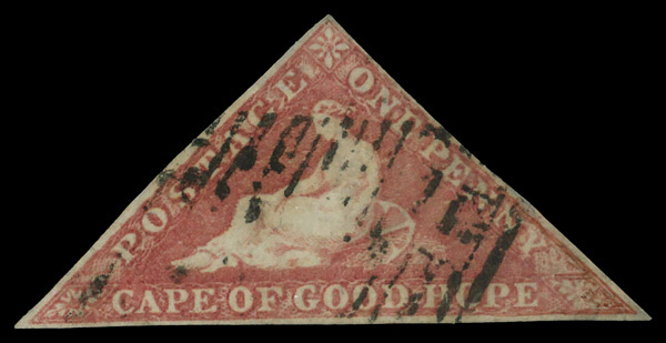5532 O 12 image1863-64, Triangular, De La Rue printing, 1d deep carmine red (Scott 12), single, Fine to Very Fine.