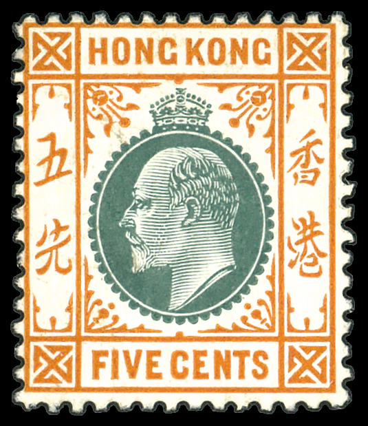 5545 og 91 image1904, King Edward VII, 5¢ dull green & brown orange, ordinary paper (Scott 91), Multiple Crown CA watermark, single, o.g., hinged, Fine to Very Fine.