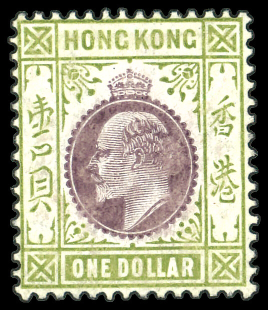 5546 og 103 image1904, King Edward VII, $1 purple & sage green, ordinary paper (Scott 103), Multiple Crown CA watermark, single, o.g., hinged, Fine to Very Fine.