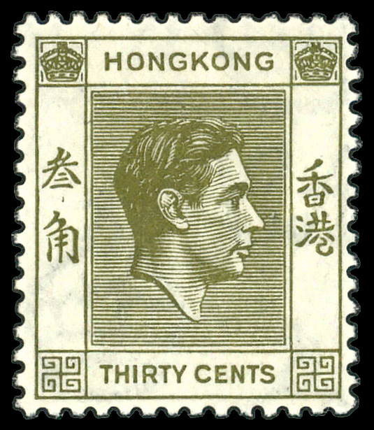 5547 og 161 image1938, King George VI, 30¢ yellow olive, perf 14 (Scott 161), single, o.g., hinged, Fine to Very Fine.