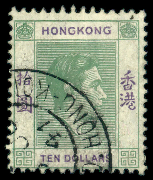 5548 O 166 image1938, King George VI, $10 green & violet (Scott 166), single, Fine to Very Fine.