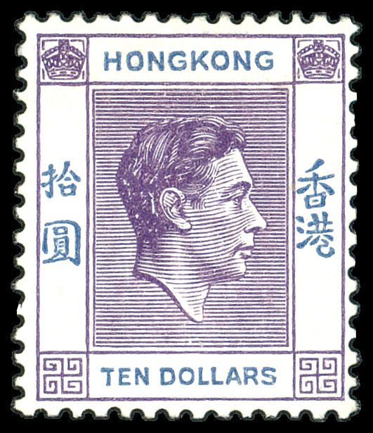 5549 og 166A image1947, King George VI, $10 reddish violet & blue, chalky paper (Scott 166A), single, o.g., hinged, Fine to Very Fine.