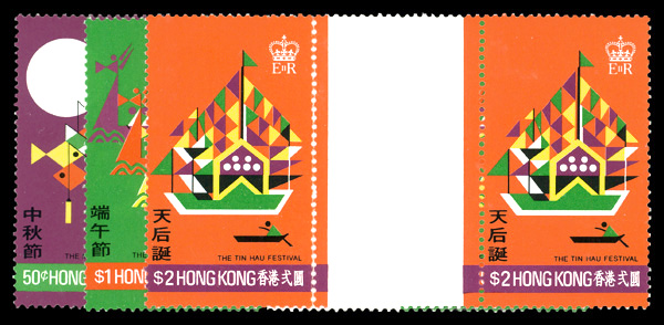 5552 nh 306-308 image1975, Festivals complete (Scott 306-308), complete set of pairs with vertical gutters, o.g., never hinged.