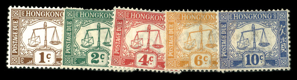 5555 J1-J5 image1923, Scales Showing Letter Overweight complete (Scott J1-J5), complete set of singles, o.g., hinged, Fine to Very Fine.