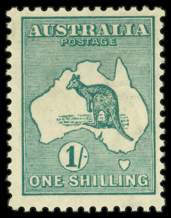5521 og 42 image1915, Kangaroo and Map, 1s blue green (Scott 42), 2nd watermark, single, o.g., hinged, Fine to Very Fine.