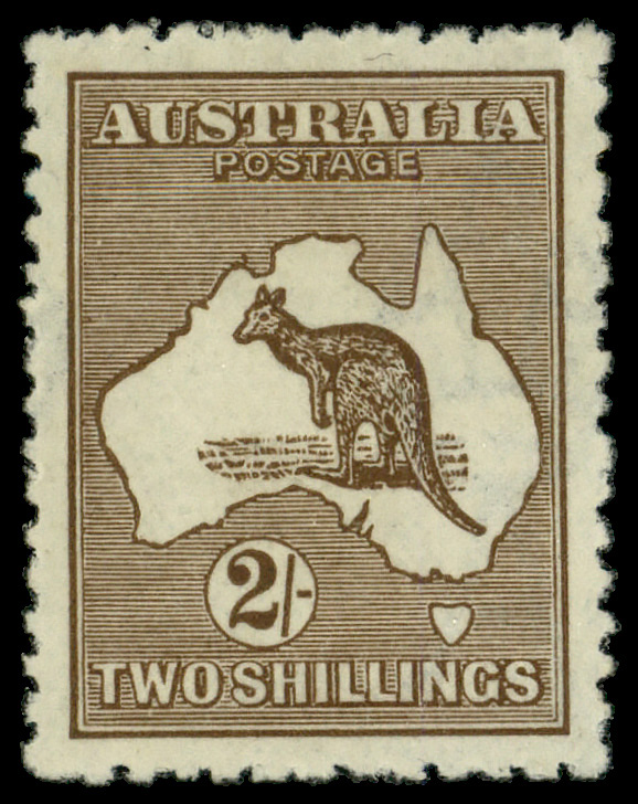5522 og 52 image1916, Kangaroo and Map, 2s brown (Scott 52), 3rd watermark, single, o.g., hinged, Fine to Very Fine.