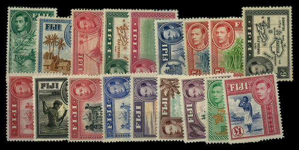 5533 og 117-131B image1938-55, King George VI Pictorials, ½d to £1 complete (Scott 117-131B), complete set of singles, o.g., hinged, Fine to Very Fine.