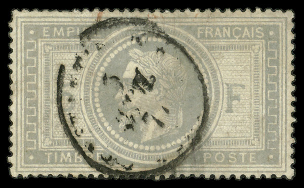 5755 O 37 image1869, Napoleon III Laureate, 5fr gray lilac on lavender (Scott 37), single, Fine to Very Fine.