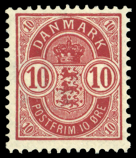 5725 nh 39 image1884, Coat of Arms, 10øre carmine, large corner numerals (Scott 39), single, o.g., never hinged, Fine to Very Fine.