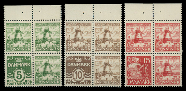 5730 BKnh 223d,229b,238Al image1933-1937, Wavy Lines with Numerals and Dybbol Mill (Scott 223d,229b,238Al), booklet panes with tabs, o.g., never hinged, Fine to Very Fine.