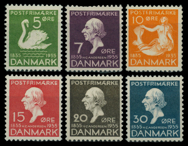 5731 nh 246-251 image1935, Hans Christian Andersen complete (Scott 246-251), set of 6, complete set of singles, o.g., never hinged, Fine to Very Fine.