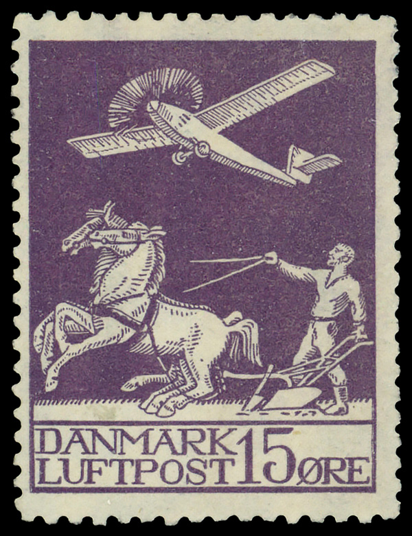 5736 nh C2 imageAirmail, 1926, First Issue, 15öre violet (Scott C2), single, o.g., never hinged, Fine to Very Fine.