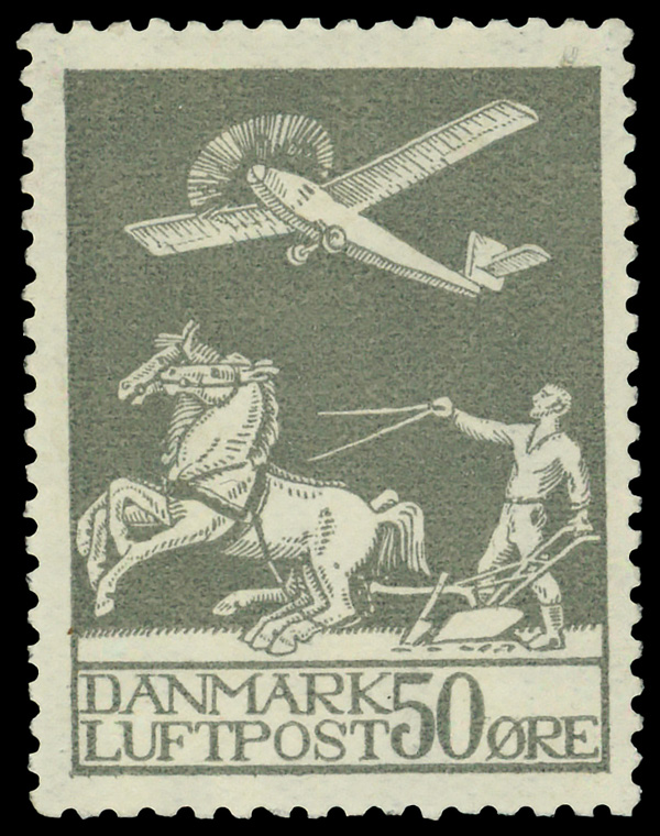 5738 nh C4 imageAirmail, 1929, First Issue, 50öre light gray (Scott C4), single, o.g., never hinged, Fine to Very Fine.