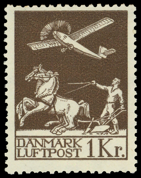 5739 nh C5 imageAirmail, 1929, First Issue, 1kr chocolate (Scott C5), single, o.g., never hinged, Fine to Very Fine.