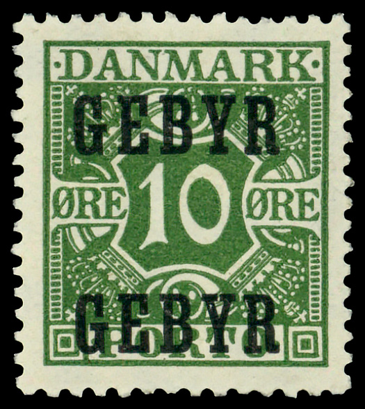 5740 nh I1 imageLate Fee, 1923, "GEBYR" on Postage Due, 10öre green (Scott I1), single, o.g., never hinged, Fine to Very Fine.