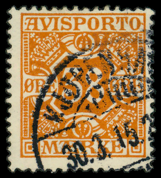 5743 O P18 imageNewspaper Stamp, 1914, 38øre orange (Scott P18), single, Fine to Very Fine.