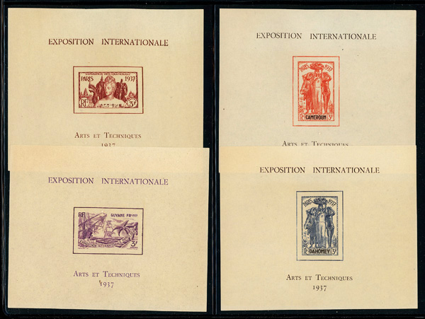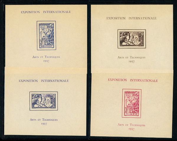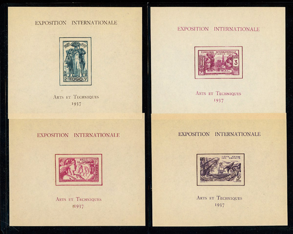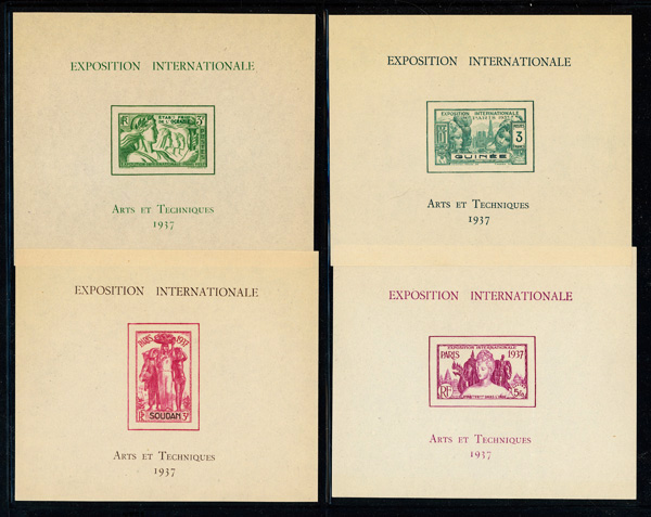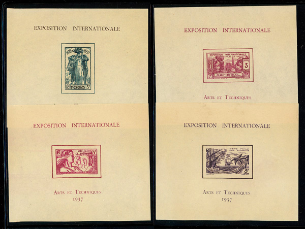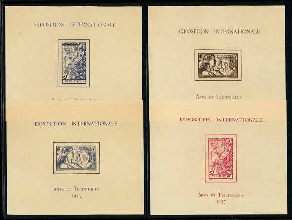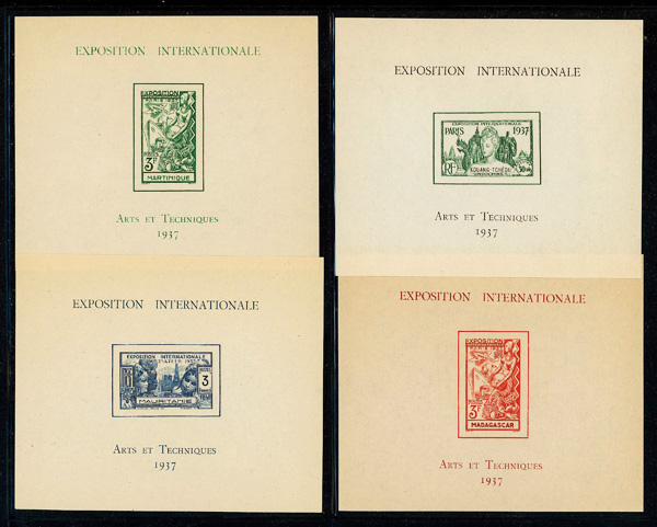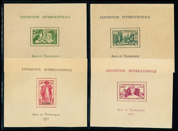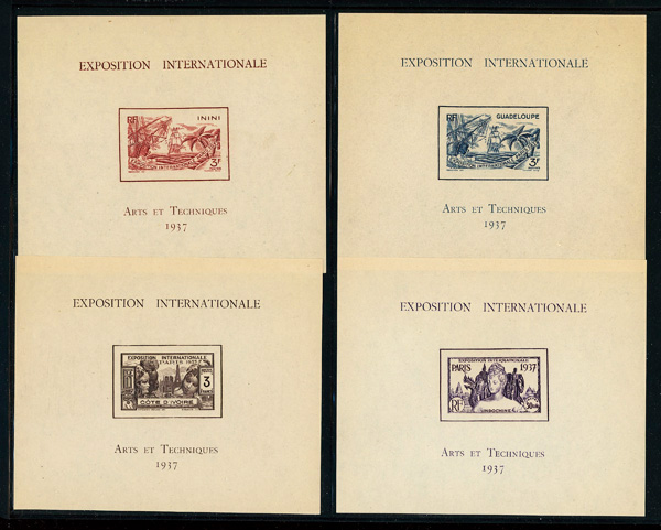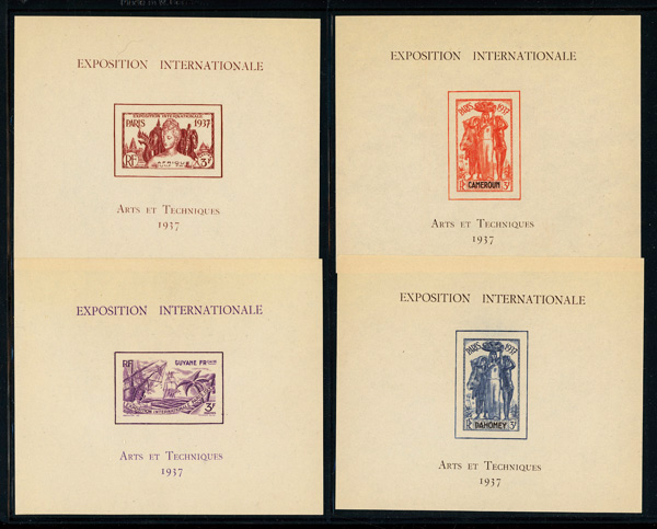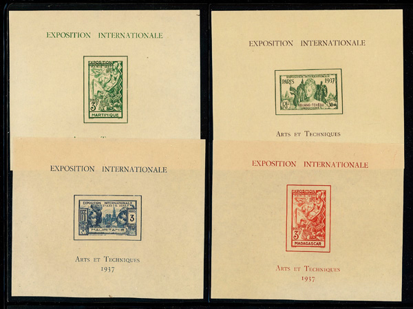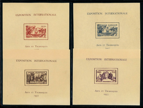 5753   imageFrench Area, 1937, Paris International Exposition, souvenir sheets, complete, set of 24, o.g., never hinged, Extremely Fine.