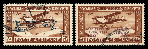 5747 O C3-C4 imageAirmail, 1931, Graf Zeppelin complete (Scott C3-C4), complete set of singles, Very Fine.