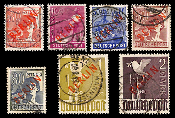 5872 9N35-9N41 image1949, U.P.U. 75th Anniversary, complete (Scott 9N35-9N41), set of 7, Fine to Very Fine.