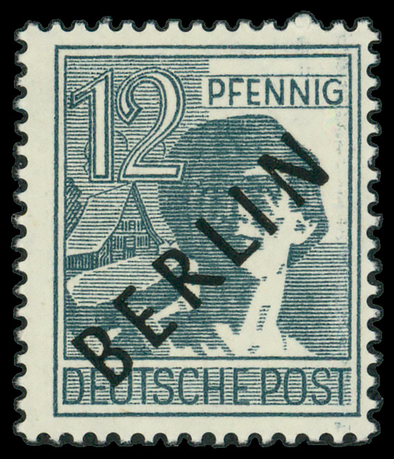 5862 nh 9N5 image1948, Laborer 12pf gray overprinted Berlin in black (Scott 9N5), single, o.g., never hinged, Fine to Very Fine, thick paper variety, signed Richter.