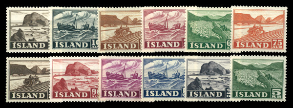 5952 nh 247-252 image1948, View and Eruption of Mt. Hekla complete (Scott 247-252), complete set of singles, o.g., never hinged, Fine to Very Fine.