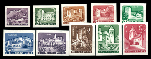 5924 nh 1356-1365 image1961 Castle Type of 1960, complete imperf singles (Scott 1356-1365), o.g., never hinged, Fine to Very Fine.