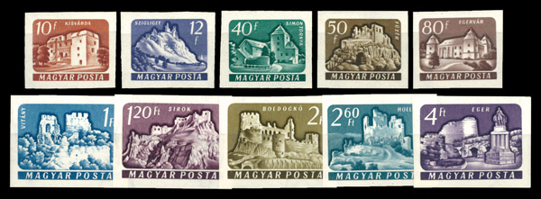 5923 nh 1282-1291 image1960, Castles, complete imperf singles (Scott 1282-1291), o.g., never hinged, Fine to Very Fine.