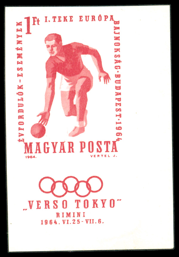 5926 nh 1585a image1964, Bowler, Olympic Rings added to bottom of stamp, imperf (Scott 1585a), o.g., never hinged, Fine to Very Fine.