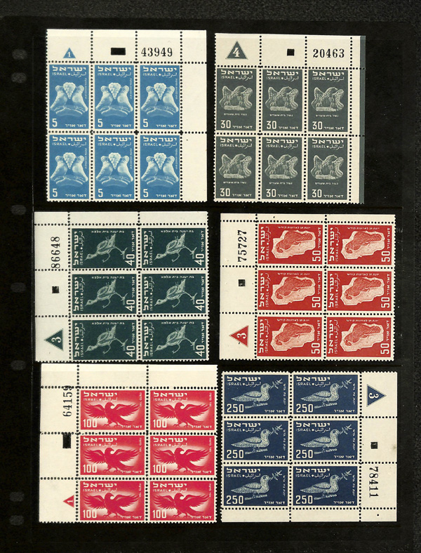5982 nhbl 25 image1950, 500p Negev Camel (Scott 25), plate block of 4, o.g., never hinged, Fine to Very Fine.