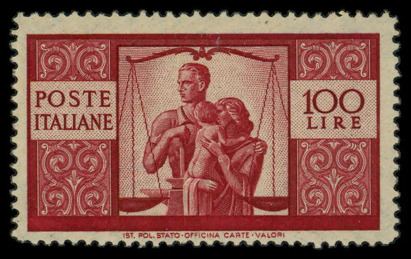 5990 nh 477 image1946, 100l Carmine lake, United Family and Scales (Scott 477), single, o.g., never hinged, Fine to Very Fine.