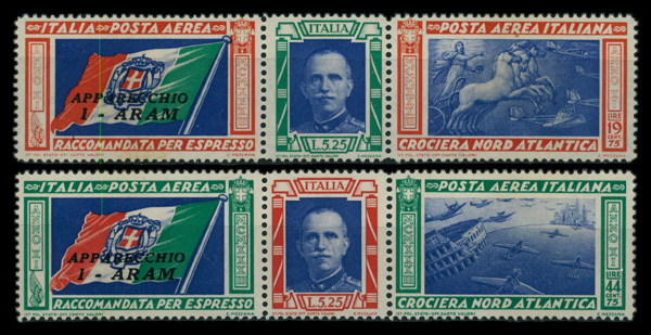 5993 og C48-C49 image1933, Transatlantic Flight lead by General Italo Balbo (Scott C48-C49), complete set of strips of 3, o.g., hinged, Fine to Very Fine.
