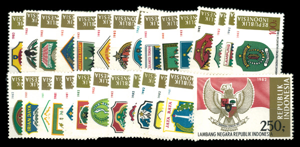 5978 1-22 imageIndonesian Provinces & States, Riau archipelago issue complete (Scott 1-22), complete set of singles, o.g., never hinged, Fine to Very Fine.