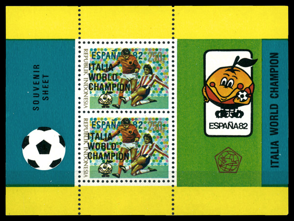 5972 nhbl 1177b image1982, World Cup overprinted in black (Scott 1177b), souvenir sheet of 2, o.g., never hinged, Fine to Very Fine.
