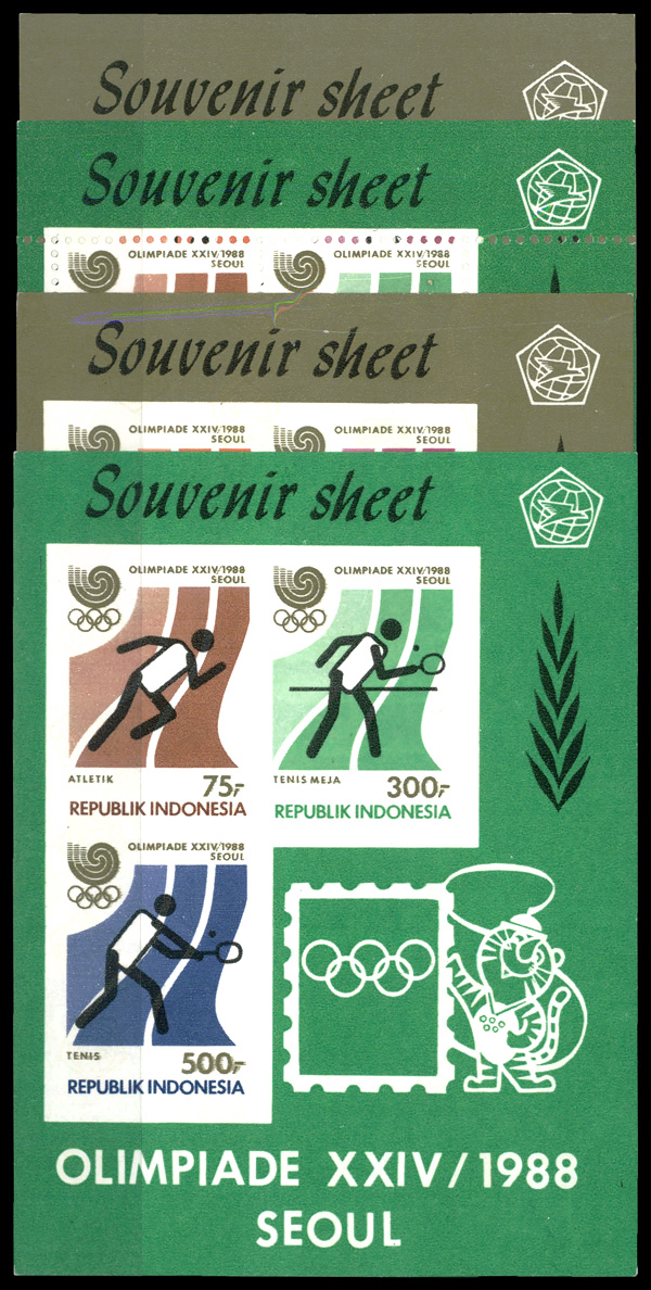 5974 nhbl 1354a,1355a image1988, Summer Olympics, Seoul complete (Scott 1354a,1355a), 4 souvenir sheet of 2, o.g., never hinged, Fine to Very Fine, see note after 1355a.