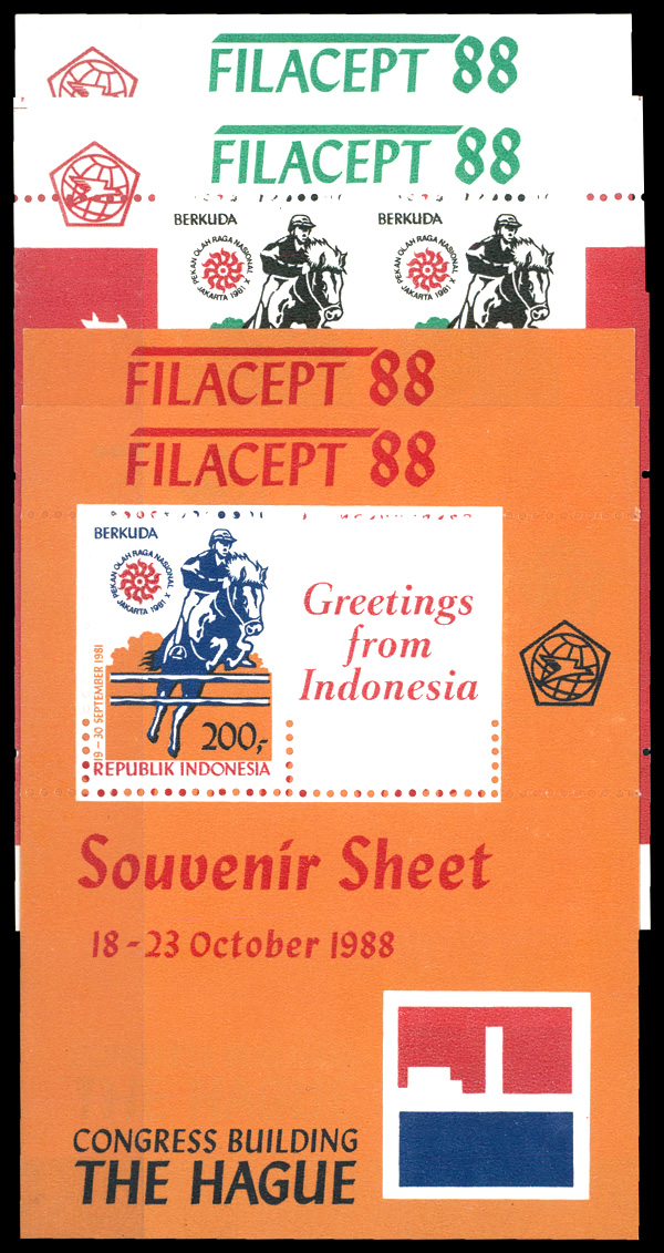 5975 nhbl 1374-1375 image1988, FILACEPT 88, The Hague, complete (Scott 1374-1375), 4 souvenir sheet of 2, o.g., never hinged, Fine to Very Fine.