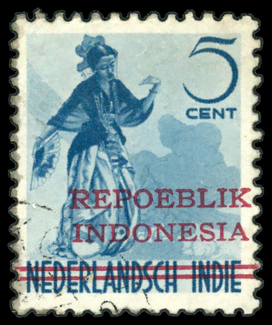 5967 O 1L7 image1945, Padjogé Dancer, Southern Celebes, 5c blue overprinted Repoeblik Indonesia in red (Scott 1L7), single, Fine to Very Fine.