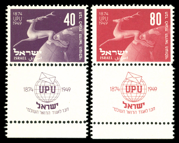5984 nh 31-32 image1950, U.P.U. complete (Scott 31-32), set of 2, complete set of singles with tabs, o.g., never hinged, Fine to Very Fine.