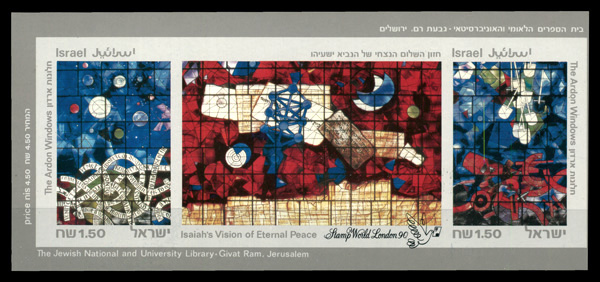 5986 nhbl 1041 image1990, Isaiah's vision of Eternal Peace overprinted Stamp World London 90 (Scott 1041), souvenir sheet of 2, o.g., never hinged, Fine to Very Fine.