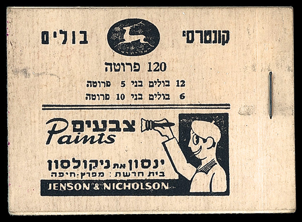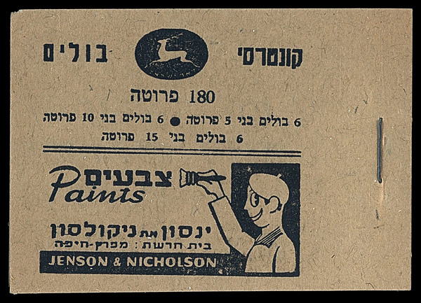 5981 BKnh 18-20 image1949-1950, Ancient Judean Coins, 5p purple, 10p green & 15p deep rose in complete booklet (Scott 18-20), complete and unexploded, o.g., never hinged, Fine to Very Fine.